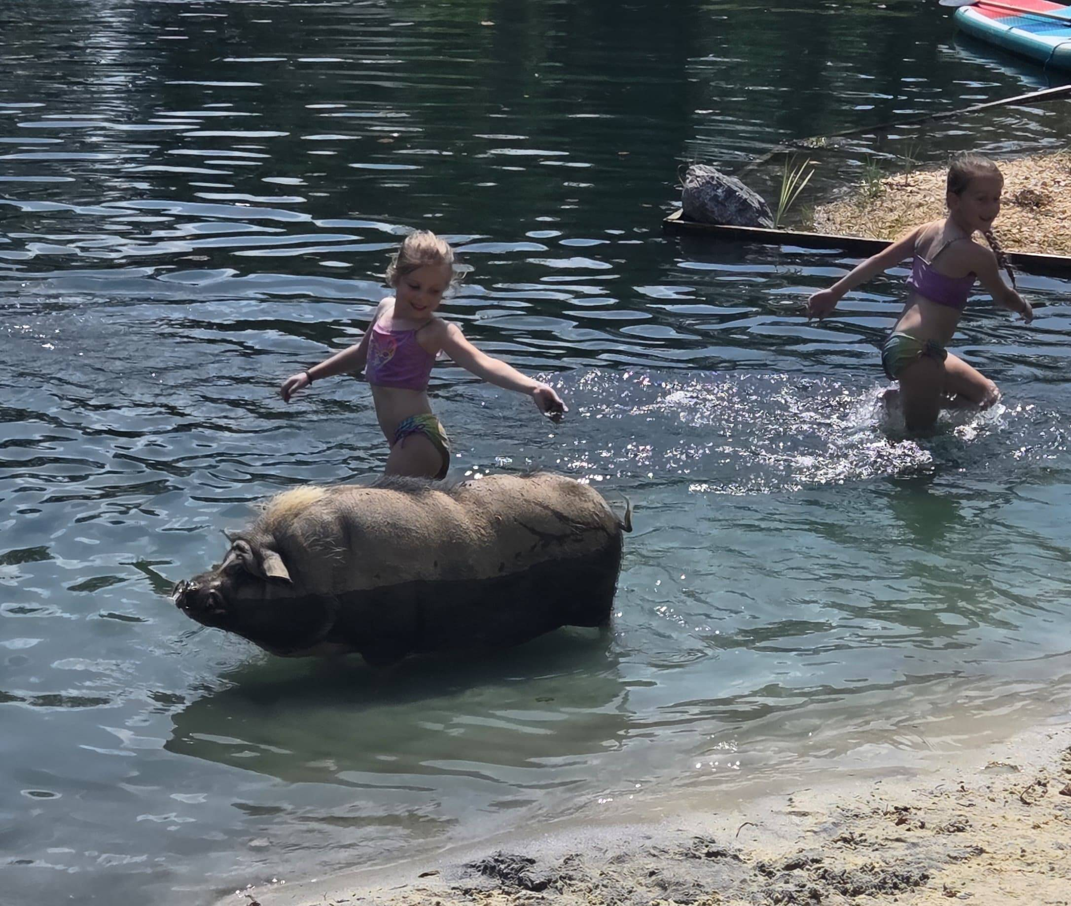 Pig Floyd in the swim pond.